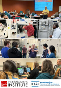 The Intermediate Nonwovens Short Course provides attendees with an overview of nonwoven production processes and end-product applications. The course covers the chemical and physical make-up of nonwovens, the properties of materials used in making nonwovens, and the manufacturing processes used to produce nonwovens. This course, presented in cooperation with INDA, the Association of the Nonwovens Fabrics Industry, offers a balance of in-the-classroom learning along with hands-on activities and the opportunity to experience NWI’s state-of-the-art pilot lines and analytical characterization capabilities on the Centennial Campus of NC State University.