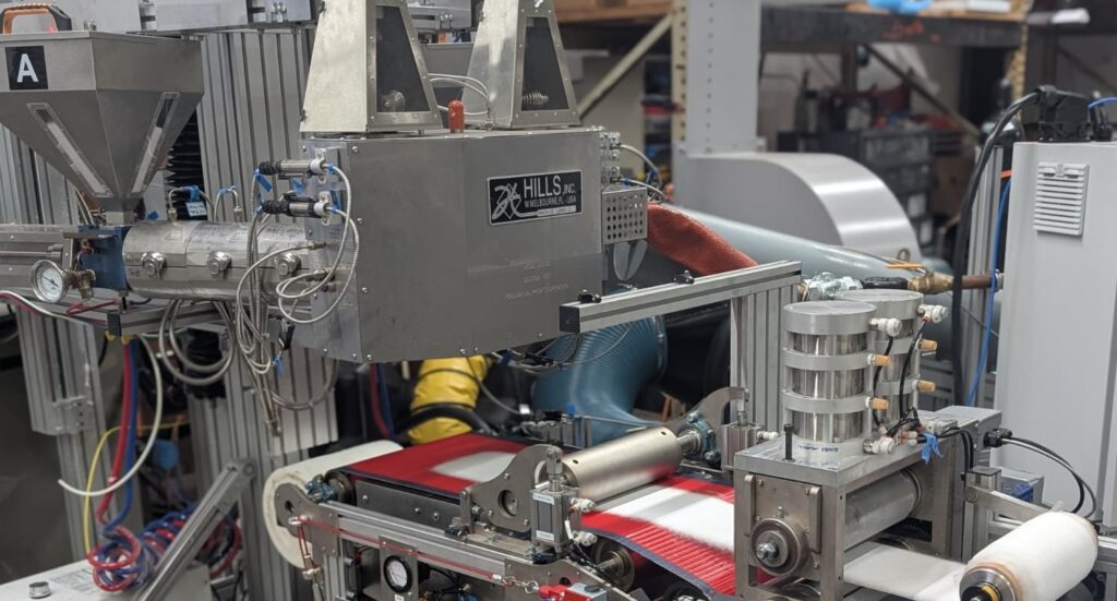 The equipment was made possible by a generous donation by Hills, Inc. of West Melbourne, Florida USA. “No where else in the world do polymer, fiber, and fabric innovations come together to meet the needs of both academia and industry.  Hills and the NWI are a natural fit.  We look forward to developing tomorrow’s nonwovens together.” said Arnold Wilkie, President and Owner of Hills.  Wilkie who has a distinguished, 55+ year career in advancing yarn, fiber, and nonwoven technologies has been involved with and supported The Nonwovens Institute since its founding in 1991 as the Nonwovens Cooperative Research Center (NCRC), with Hills joining as a member in 2001.  He is the recipient of a Lifetime Achievement Award from INDA – The Association of the Nonwovens Industry in 2024 and serves on the NWI Executive Committee.